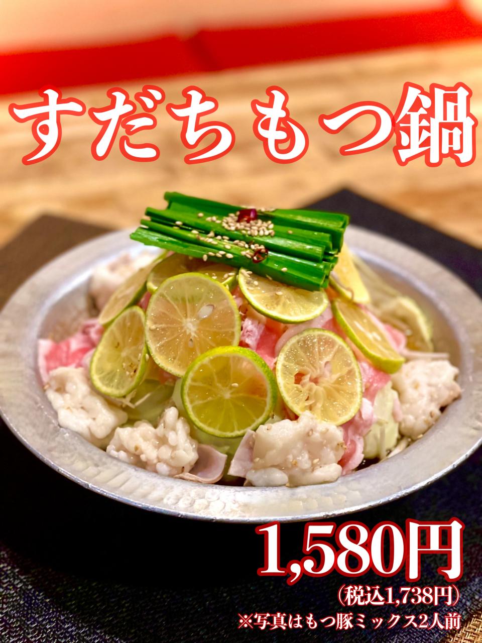 福岡ではよく見られるスタイルかと思いますが、すだちもつ鍋は通常のもつ鍋よりあっさりさっぱりお召し上がりいただけます😊